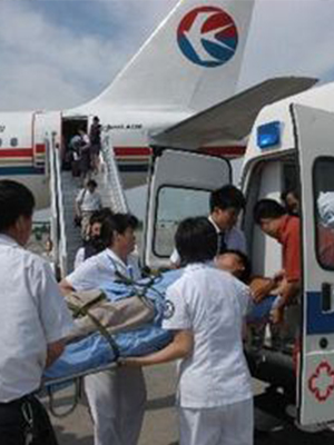 一.迁安市正规救护车长途护送告诉您Heimlich手法(又称腹部手拳冲击法)1.成人方法(清醒病人):(1)救援人员站在病人身后,用手臂环绕病人的腰部;(2)抢救者一手握拳,将拇指侧方放在患者胸廊下和脐上腹部;(3)另一只手紧握拳头,迅速向上重复冲击,直至异物排除。2.婴儿方法:让病人平躺在坚硬的地面或床板上,面部向上,救援人员跪着或站在脚边。或救援人员坐着,让孩子骑在大腿上,背靠救援人员,用中指或
